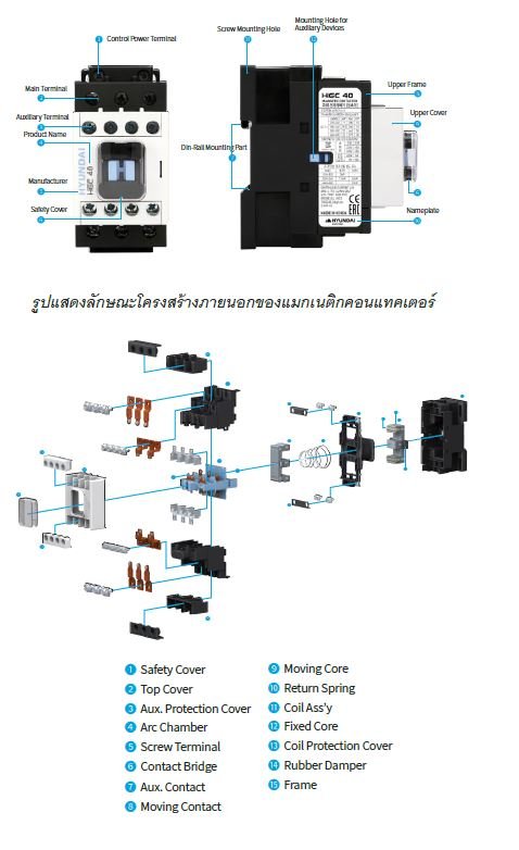 รายละเอียดของส่วนประกอบภายในแมกเนติกคอนแทคเตอร์